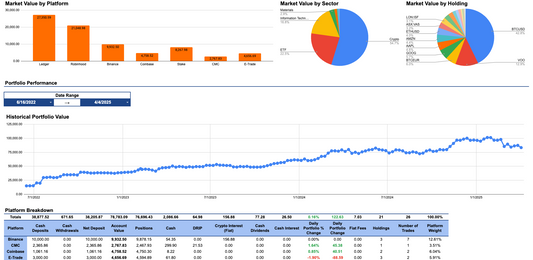 Monitor your portfolio with precision using our advanced investment trackers. From stocks to crypto and dividends, optimise your strategies and build wealth effectively.