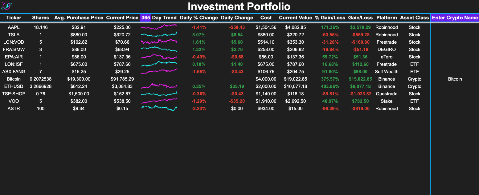 Step into the past and experience the nostalgia of one of our first creations, the Portfolio Tracker 1G Prototype. Track your investments through live automated dashboards, visuals and statistics. Capability for multi-platform and multi-currency use.