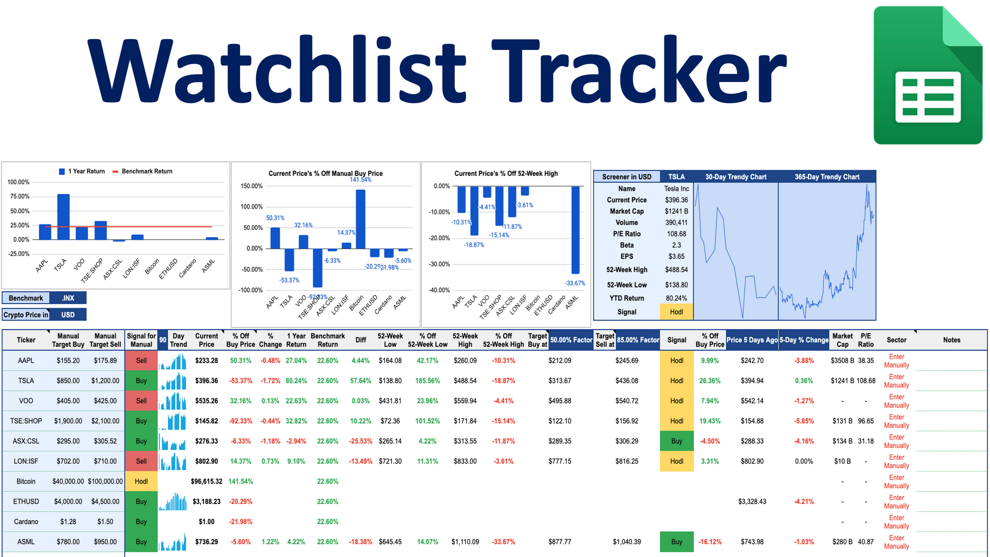Step into the past and experience the nostalgia of one of our first creations, the Watchlist Tracker 1G Prototype. Input your watchlist assets (stocks, ETFs or cryptocurrencies) to automatically retrieve insightful statistics such as current price, % change, 52-Week High and Low, Market Cap & P/E Ratio.